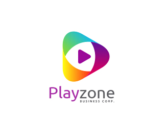 影視公司logo使用經典的播放按鈕為素材,環繞的立體設計風格,增強艷麗的色彩,logo構圖簡約又有質感。